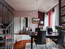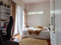 Alakerrassa kaksi makuuhuonetta, yläkerrassa yksi makuuhuone