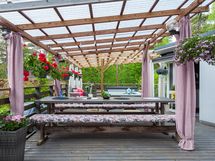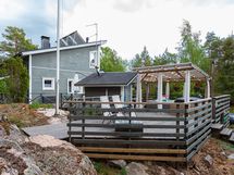 Kesämökin ja omakotitalon yhdistelmä ja puoli tuntia Turkuun, vartti Paraisille. Ei naapureita näköetäisyydellä. 2004 -valmistunut puutalo isoilla terasseilla ja kesäkeittiöllä täysin omassa rauhassa. 1000m²:n rantapalstalla (400m) sauna, laituri ja katettu terassi. Osuus yhteisiin kalavesiin. Iso, oma tontti 1,9 ha. Tontilla upeita kalliota ja kallioisia piilopaikkoja. Asuintilat pääosin yhdessä kerroksessa, yläkerrassa 1 huone sekä aulahuone, parveke kiertää lähes koko talon. Alustassa askarteluhuone, autotalli sekä varastotilaa. Terassilla puulämmitteinen palju (puhdistusjärjestelmällä). Oma porakaivo ja juuri asianmukaiseksi täydennetty jätevesijärjestelmä. Hyvin edulliset asumiskustannukset, varsinkin jos lämmität puulla. Aurinkokeräimet, varaava takka/leivinuuni, ilmalämpöpumppu. Talon läheisyydessä kaksi vierasmajaa. Upea paikka. Tule ja ihastu! Sovi oma esittelysi 040-5374453 /marjut@lkvtiimi.fi