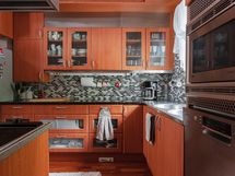 Jääkaappipakastin (ilman vesiliitäntää), kaasuliesi, sähköliesi, parila, liesituuletin, leivinuuni, apk. Kesäkeittiössä vesiliitäntä (lämmin ja kylmä vesi)