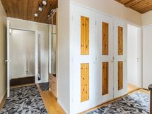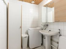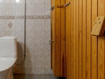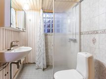 - Sauna, sähkökiuas, kylpyhuone, erillinen wc, suihkuseinä, peilikaappi, pesukoneliitäntä, lattialämmitys Peuhuoneen suihkun alueella, kiinteät valaisimet.