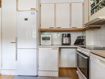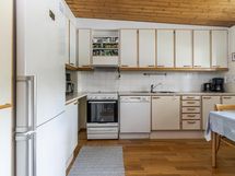 - Jääkaappipakastin, keraaminen liesi, liesituuletin, astianpesukone, kaapistot, kiinteät valaisimet.
