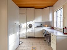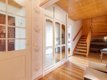 Tervetuloa tutustumaan tähän tilavaan ja kodikkaaseen omakotitaloon, joka sijaitsee vehreällä ja rauhallisella Finbyn alueella Paraisilla. Vuonna 1990 valmistunut, tiiliverhoiltu talo tarjoaa 143 m² asuintilaa kahdessa kerroksessa. Alakerrassa sijaitsevat olohuone, ruokailutila ja keittiö, sekä yksi makuuhuone. Lisäksi alakerrasta löytyvät tilava kylpyhuone saunoineen ja käytännöllinen kodinhoitohuone, josta on kulku sekä takapihalle että suureen kahden auton autotalliin. Yläkerrassa on kaksi makuuhuonetta ja erillinen wc. Tilat on suunniteltu arjen sujuvuutta ja viihtyisyyttä silmällä pitäen, ja ne tarjoavat erinomaiset puitteet niin perhe-elämälle kuin etätyöllekin.