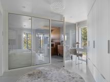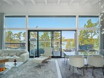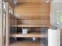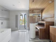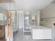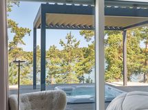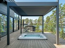 - Pesutilojen varusteet: WC-istuin, suihku, pesuallas, allaskaappi, peili, poreamme, lattialämmitys ja peilikaappi. Pesutilojen kuvaus: Päärakennuksessa on kaksi en-suite kylpyhuonetta, joista toisessa myös sauna ja poreamme. Lisäksi eteisessä erillis-wc. Saunamökissä kylpyhuone ja wc. Molempien talojen terassilla ulkoporeamme sekä ulkosuihku. Erillisten WC:n lukumäärä: 3. Erillisen WC:n varusteet: WC-istuin, allaskaappi ja lattialämmitys. Erillisen WC:n kuvaus: Eteisessä ja päämakuuhuoneen pukeutumishuoneessa erillis-wc:t. Toisen makuuhuoneen kylpyhuoneessa oma wc. Kaikissa wc:issä liiketunnistimella toimiva kansi, kosketusvapaa huuhtelupainike sekä Aquaclean-toiminnot. Saunarakennuksessa myös oma wc.