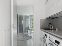 - Vaatehuone, kylmä ulkovarasto, lämmin ulkovarasto, kaapistot ja autotalli, jonka yhteydessä lämmin varasto/harrastetila ja apukeittiö. Lisätietoja säilytystiloista: Autotallin varastossa on toinen pesukone ja kuivausrumpu sekä jääkaappi-pakastin ja viinikaappi.