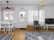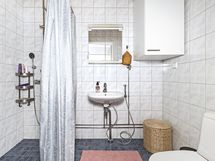 - Sauna, sähkökiuas, kylpyhuone, suihku, peilikaappi, pesukoneliitäntä, lattialämmitys, wc.