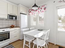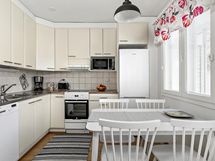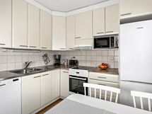 - Jääkaappipakastin, induktioliesi, liesituuletin, astianpesukone, kaapistot, kiinteät valaisimet. Keittiö avautuu olohuoneeseen (avokeittiö).