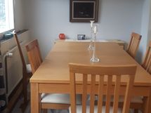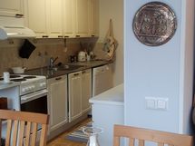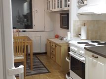 - Paljon kaappitilaa, Paljon työskentelytilaa, Tilaa isolle ruokapöydälle, Astianpesukone, Laminaattitasot, Sähköliesi, Jää-pakastinkaappi