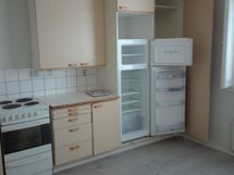 Tilaa isolle ruokapöydälle, Paljon kaappitilaa, Laminaattitasot, Sähköliesi, Liesituuletin, Jääkaappi