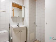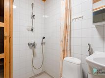 - Sauna, sähkökiuas, kylpyhuone, suihku, peilikaappi, allaskaappi, pesukoneliitäntä, lattialämmitys KPH, kiinteät valaisimet.