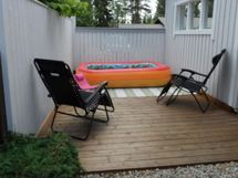 Kohteessa on kaunis ja helppohoitoinen pihapiiri. Pihalta löytyy grillikatos, leikkimökki ja puuvarasto. Talon päädyssä on iso katettu terassi ja kiinteistöstä löytyy paljon varastotilaa.