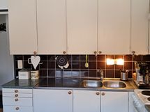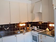 - Sähköliesi, Jää-pakastinkaappi, Tilaa isolle ruokapöydälle, Kiinteät valaisimet