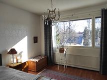 - Valoisa, isot ikkunat, sälekaihtimet makuuhuoneessa, parvekelasit kaihtimilla