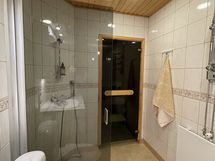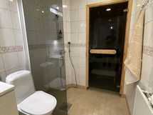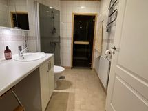 Hissitalo, WCn/suihkun ovi 100cm, joten soveltuu hyvin pyörätuolille. Autokatospaikka on tavallista leveämpi.
