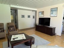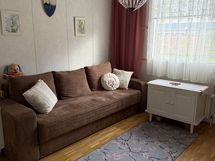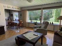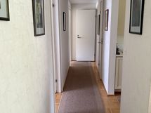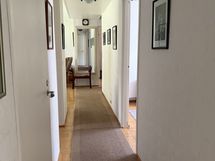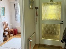 - Läpitalon huoneisto. Makuuhuoneiden ikkunat itään ja olohuone, keittiö ja takkahuone länteen.