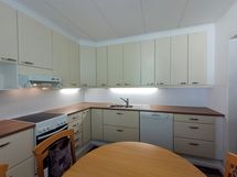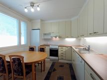 Keittiön varusteet: Jääkaappi, liesi, astianpesukone ja liesituuletin (omistaja asentanut itse, ei tietoa onko asianmukainen). Myyjä ei vastaa kodinkoneiden ja laitteiden toimivuudesta.