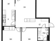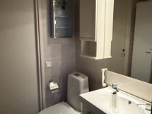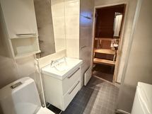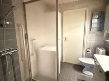 - Varustus: suihkuseinä, pesukoneliitäntä, wc-istuin, suihku, peili, kiinteät valaisimet, kylpyhuonekaapisto.