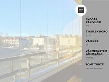 Muut maksut: Vesimaksu 24,00 euro/henk/kk ennakko - asunnossa omat vesimittarit