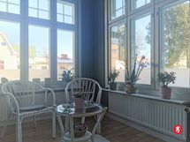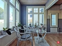 - Oma terassi pihan puolella. Egen terrass på innergården.