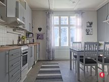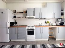- Keittiön varusteet: Liesi (spis), liesituuletin (fläkt), jääkaappipakastin (kylskåp/frys (2017)) ja astianpesukoneliittymä. Liesi: Valurautaliesi.