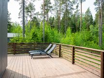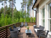 Kylpyhuone on moderni ja toimiva, ja oma sauna kutsuu rentoutumaan kiireisen päivän jälkeen. Olohuoneesta pääset suoraan tilavalle ja viihtyisälle terassille, jossa on mukava viettää kesäiltoja.