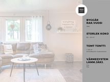 Talo on rakennettu vuonna 1964 ja sitä on vuosien varrella päivitetty huolellisesti, jotta arki olisi sekä mukavaa että huoletonta. Ikkunat ja ovet on uusittu (2006), keittiö remontoitu (2011), wc (2012), sauna ja kylpyhuone (2019), katto (2019) – ja viihtyisään olohuoneeseen asennettiin uusi takka vielä vuonna 2023. Olohuone kokoaa perheen ja ystävät yhteen lämpimään ja kutsuvaan tunnelmaan, jossa takan loiste tekee siitä kodin sydämen vuoden ympäri.