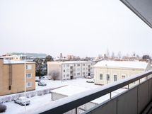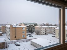 Bostaden är belägen på tredje våningen och bjuder på en enastående utsikt i flera väderstreck. Balkongen vetter mot söder med vacker vy över centrum, där du även kan skymta Pedersöre kyrkas kyrktorn och njuta av magiska solnedgångar. Utsikten är något alldeles extra, ljus, fri och tilltalande åt alla håll.