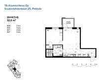 Saunallinen tilava kaksio, jonka keittiö, ruokailutila ja olohuone ovat avointa yhtenäistä tilaa. Säilytystilaa tuo makuuhuoneen yhteydessä oleva vaatehuone. Lasitettu parveke suuntaa koilliseen, sisäpihan suuntaan. Vapaa asunto sijaitsee kerroksessa 2. Asumisoikeusmaksu: 29398 € Vastike: 680 €/kk.