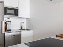 - Liesi: keraaminen, erillisuuni, liesitaso. Kylmäsäilytys: jääkaappi, pakastin. Varustus: mikroaaltouuni, astianpesukone.