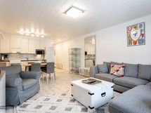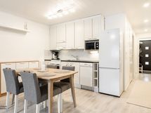 Varustus: jääkaappipakastin (2025), astianpesukone, keraaminen liesi, liesituuletin huippuimurilla, kaapistot ja kiinteä valaisin.