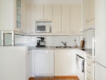 - Jääkaappipakastin, lattialiesi (keraaminen), liesituuletin, astianpesukone sekä kaapistot.