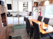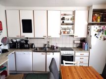 Liesi: sähköliesi, leivinuuni, puuliesi. Kylmäsäilytys: jääkaappi. Varustus: liesituuletin, astianpesukone.