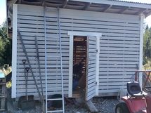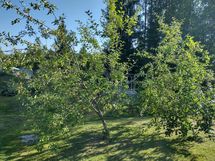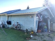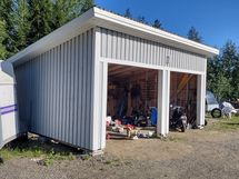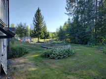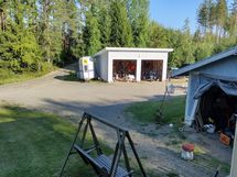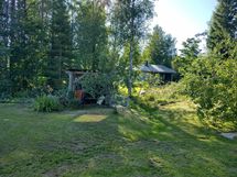 Tontti 8800 m2, jossa talon lisäksi autokatos, varasto ja liiteri.