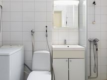 Pesutilojen kuvaus: Kylpyhuone remontoitu kokonaan v.2018. Varustus: wc-istuin, suihku.