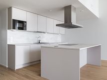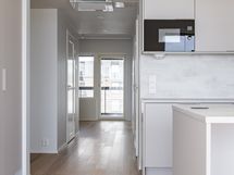 - Liesi: erillisuuni, liesitaso. Työtasot: laminaatti. Kylmäsäilytys: jääkaappi, pakastin. Varustus: mikroaaltouuni, astianpesukone, liesituuletin / hormi. Lattiat kovapuuta