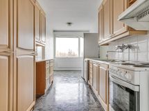 - Jääkaappipakastin, sähköliesi, liesituuletin, astianpesukone, kaapistot, kiinteät valaisimet.