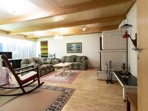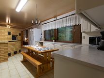 - Keittiön varusteet: Jääkaappi, erillinen pakastin, liesi, uuni, leivinuuni, liesituuletin ja astianpesukone. Liesi: Keraaminen liesi ja puuliesi. Työtason materiaali: Laminaatti ja metalli.