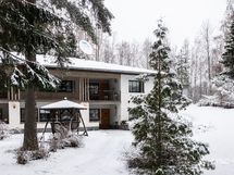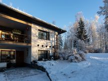 - 5mh, oh,ruokh,k,takkah,s,askarth, 2x aula, 3xwc, pieni kph, varasto, pukuhuone, tilava kellari, piha