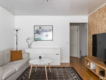 Keittiössä on kivasti tilaa ruuanlaitolle ja astioiden säilytykselle. Ruokapöydälle on sopiva paikka ikkunan edessä. Vaalea ja valoisa olohuone kutsuu viettämään aikaa perheen ja ystävien kanssa. Kylpyhuoneessa tilaan myös pesutornille ja oman saunan löylyisä voit rentoutua, vaikka monta kertaa viikossa. Erillinen wc helpottaa aamutoimia.