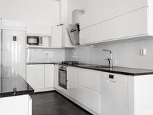 - Keittiön varusteet: Jääkaappi, erillinen pakastin, liesituuletin, mikroaaltouuni, liesi ja astianpesukone. Liesi: Kaasuliesi ja induktioliesi.