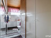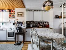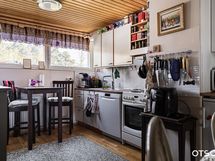 Keittiön varusteet: Jääkaappipakastin, astianpesukone, mikroaaltouuni ja liesi. Liesi: Keraaminen liesi. Työtason materiaali: Laminaatti.