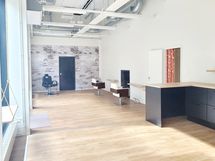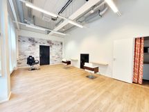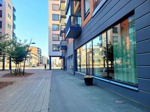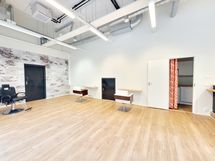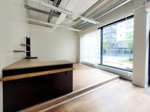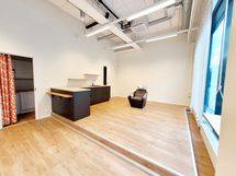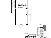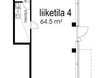 - Kuvaus: Liiketilan yhteydessä on tekninen tila. Lisäksi matalaa, hyllyillä varustettua palo-ovellista säilytystilaa
