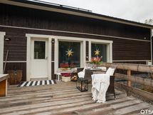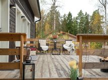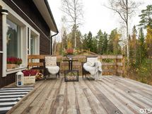 Takapihalle puiston puolelle vahvasta puutavarasta upea terassi