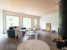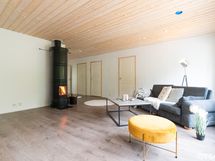 Hyvin tehty puurunkoinen, hirsipaneelivuorattu koti, jossa pesutilojen seinät kiveä alhaalta asti. Energiataloudellisemmat ikkunat. Tuulensuojalevy on paksumpaa, 25 mm. Styrox, vahvempi koko talossa, myös keskellä taloa Radon-putkisto