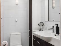 - Pesutilojen varusteet: Lattialämmitys ja suihku. Erillisten WC:n lukumäärä: 1. Erillisen WC:n varusteet: WC-istuin, lattialämmitys, peili, bidee-suihku ja allaskaappi.