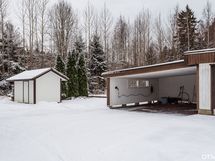 - Pinta-alan peruste: Ei tarkistusmitattu. Pinta-ala voi siis olla edellä mainittua pienempi tai suurempi. Muut tilat: autotalli ja lämmin varasto, autokatos 2:lle autolle.