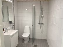 Varustus: suihkuseinä, pesukoneliitäntä, lattialämmitys, wc-istuin, kylpyhuonekaapisto.