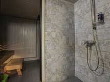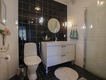 Pesutilojen kuvaus: Keskikerroksessa ja kellarissa. Varustus: lattialämmitys, wc-istuin, suihku.