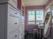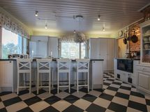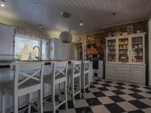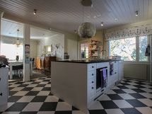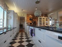 Liesi: induktio. Työtasot: laminaatti. Kylmäsäilytys: jääkaappi/pakastin. Varustus: liesituuletin, astianpesukone. Leivinuuni