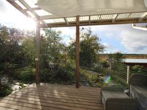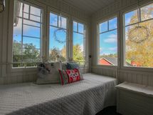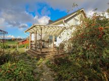 Kaksi kuistia. Kellarissa lisäksi autotalli ja varastotilaa.