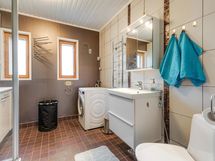 Sauna, kylpyhuone myös wc, erillinen wc 2 kpl, suihku, suihkukaappi, pesukoneliitäntä.